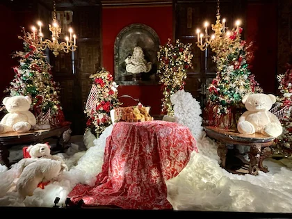 En arrivant, on vous donne une cape en velours rouge pour vous mettre dans l'ambiance et faire rêver les enfants (Père-Noël, mousquetaire, ou super-héros, chacun peut être qui il veut !). On entre ensuite dans le château par une allée bordée de sapins illuminés. À l'intérieur, chaque salle illustre un rêve qui a bercé notre enfance. L'atmosphère est toujours aussi incroyable grâce aux aux décorations, mais aussi aux feux de cheminée qui crépitent dans les salles.